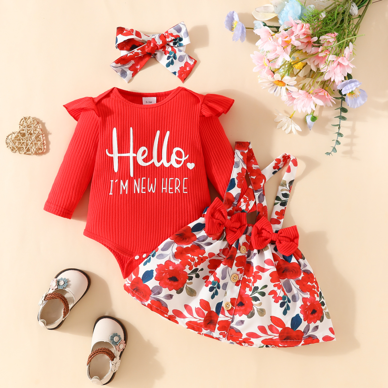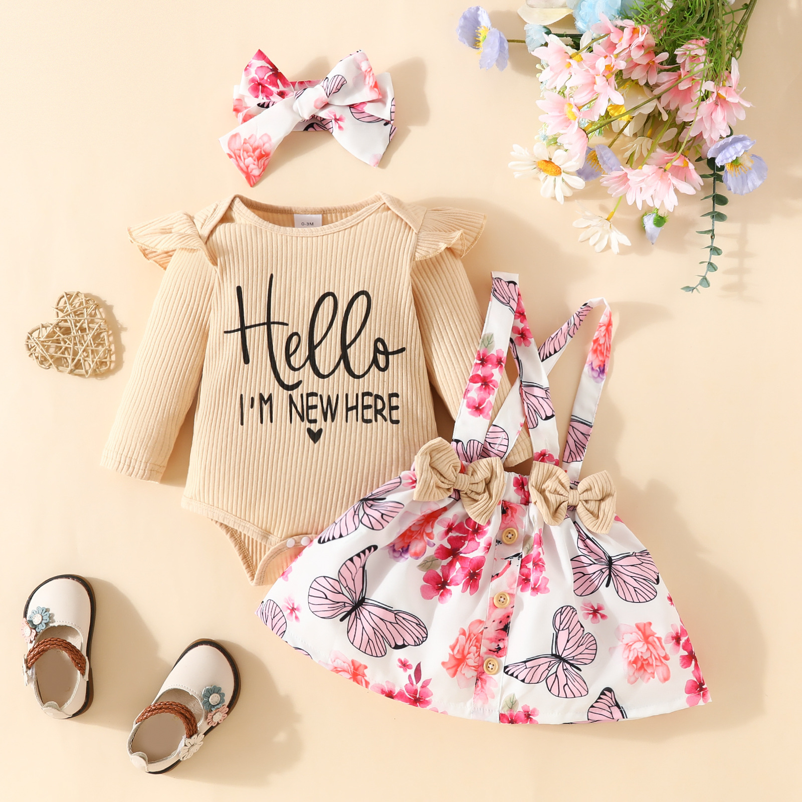 | nameOriginal | Amazon baby girl dress suit spring and autumn 0-1 years old girl long sleeve letter Top + flower butterfly suspender skirt hair band |