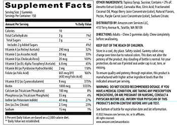 | descriptionOriginal | Description Amazon Basics Women's Multivitamin gummies feature natural fruit flavors with other natural flavors. They're vegetarian and gluten-free. Adults – Chew 2 gummies daily. |