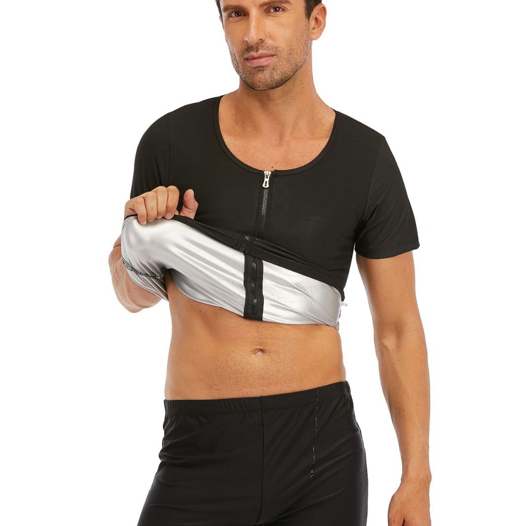 Amazon Belly Tinker Men's Zipper Short-sleeved Vest Key Body Explosive Sweat Corset Cross-border Body Shaping Clothes