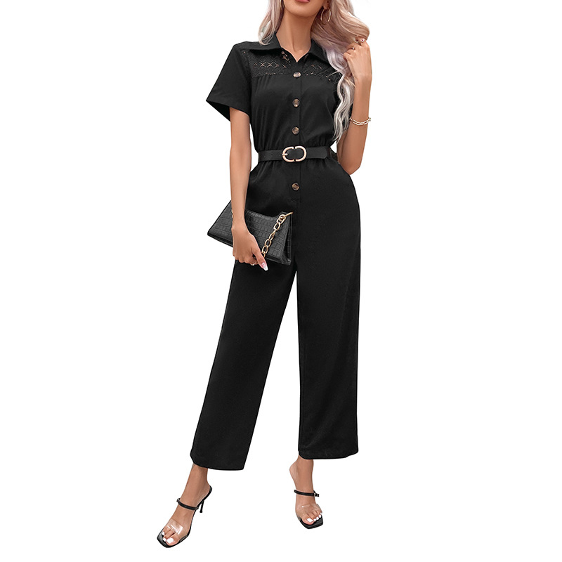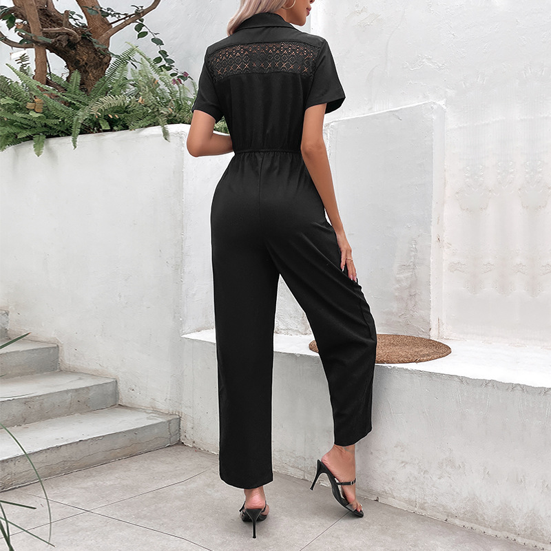 | nameOriginal | Amazon Cross-border 2023 Summer New European and American Women's Lapel Commuter Style Solid Color Waist Straight Jumpsuit for Women |