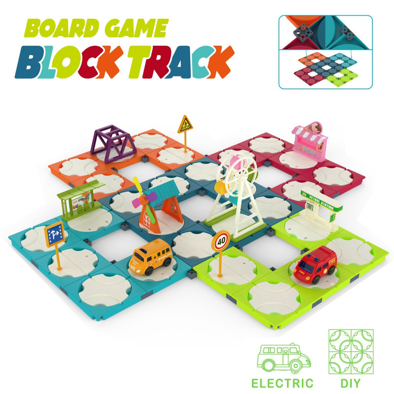 Amazon Cross-border Children’s Educational Building Blocks Electric Rail Engineering Vehicle Entertainment Early Education Scene Game Toy suit