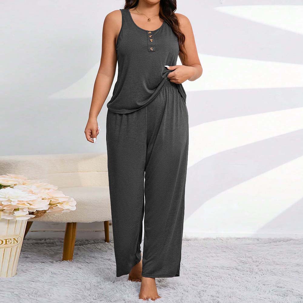 | nameOriginal | Amazon Cross-border European and American plus size Home Clothing suit Summer Simple Casual Fashion Vest Pants Two-piece Set for Women |