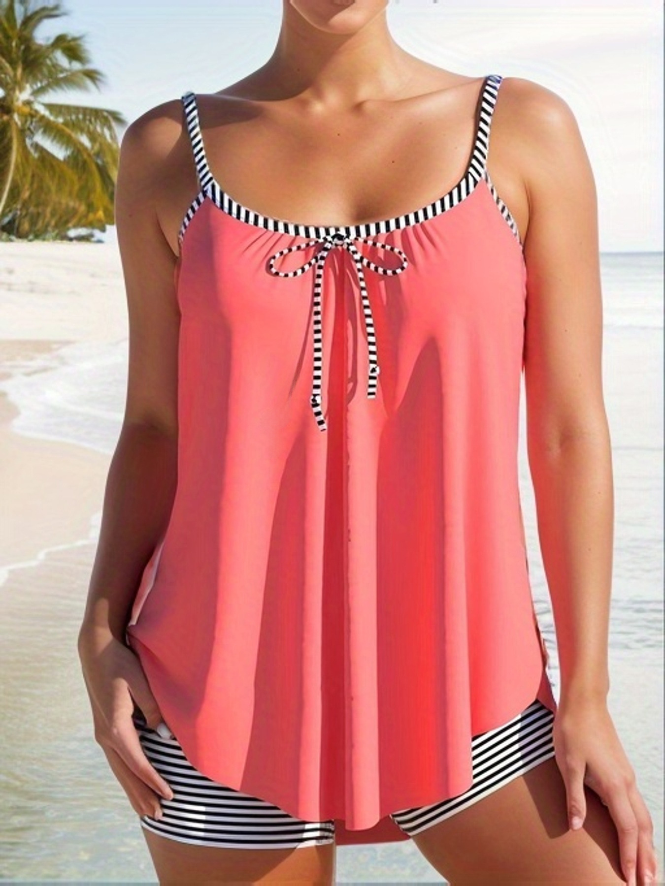 | nameOriginal | Amazon cross-border European and American sexy split solid color fat girl tankini striped swimsuit |