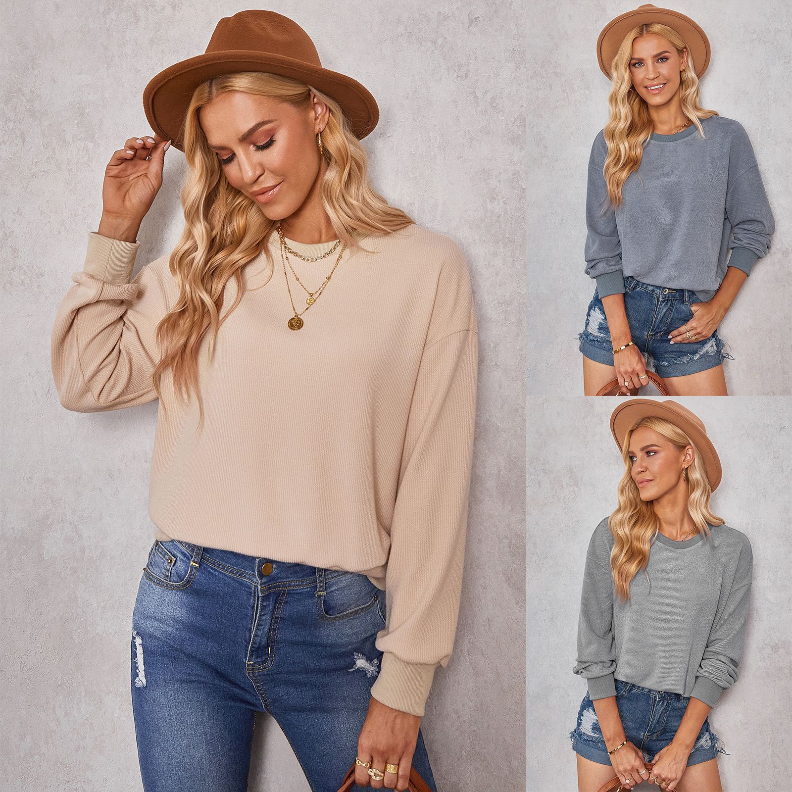 Amazon Cross-border European and American Women’s 2022 Autumn New Foreign Trade Top Women’s Fashion Solid Color Round Neck Knitted Sweater