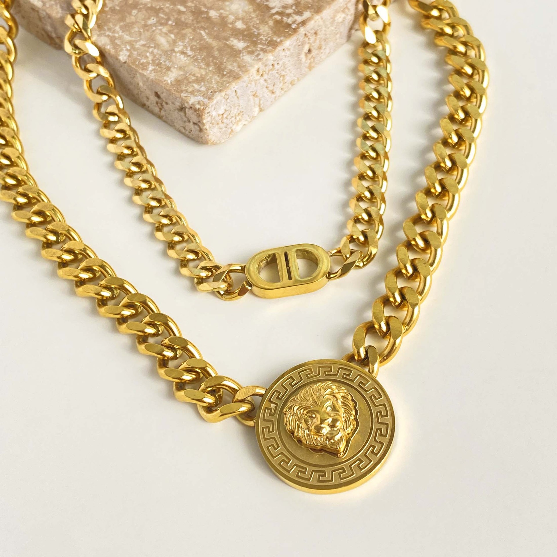 Amazon Cross-border Explosions Cuban Chain Thick Chain Lion Head CD Necklace Hip Hop Retro High-class Sense