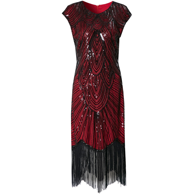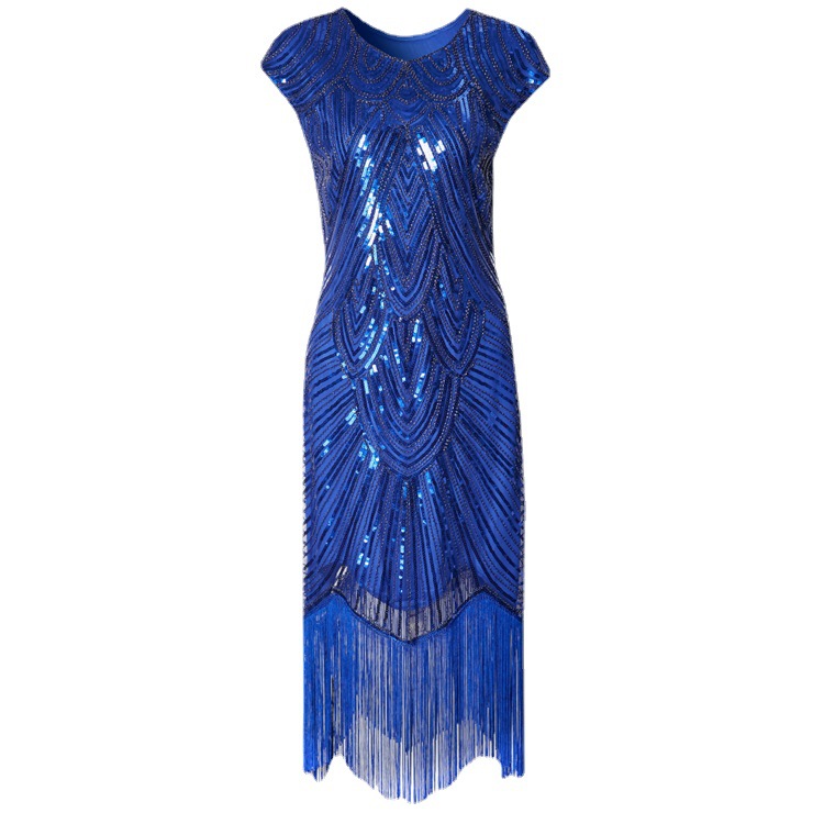 | nameOriginal | Amazon Cross-border Explosions Tassel Sequin Dress 1920s Retro European and American Party Banquet Large Size Dress |