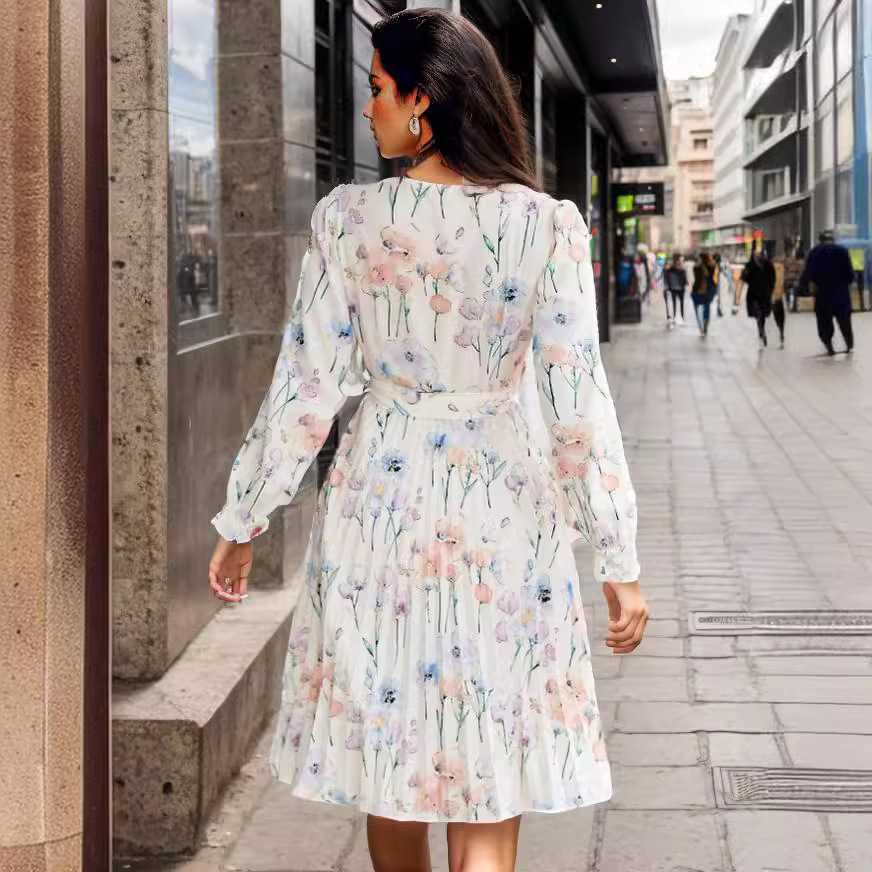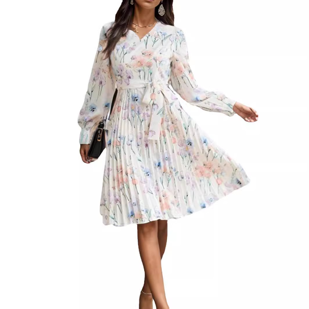 | nameOriginal | Amazon cross-border foreign trade European and American women's clothing 2024 spring floral print lace-up waist V-neck long sleeve dress |