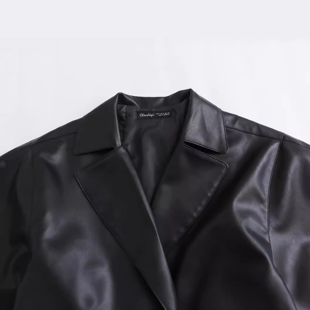 Amazon cross-border foreign trade European and American women’s clothing 2024 spring new European and American style leather drawstring jacket