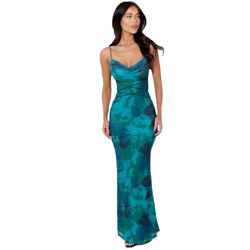 | nameOriginal | Amazon cross-border foreign trade European and American women's clothing 2024 Summer sexy backless lace-up slim printed sling dress |