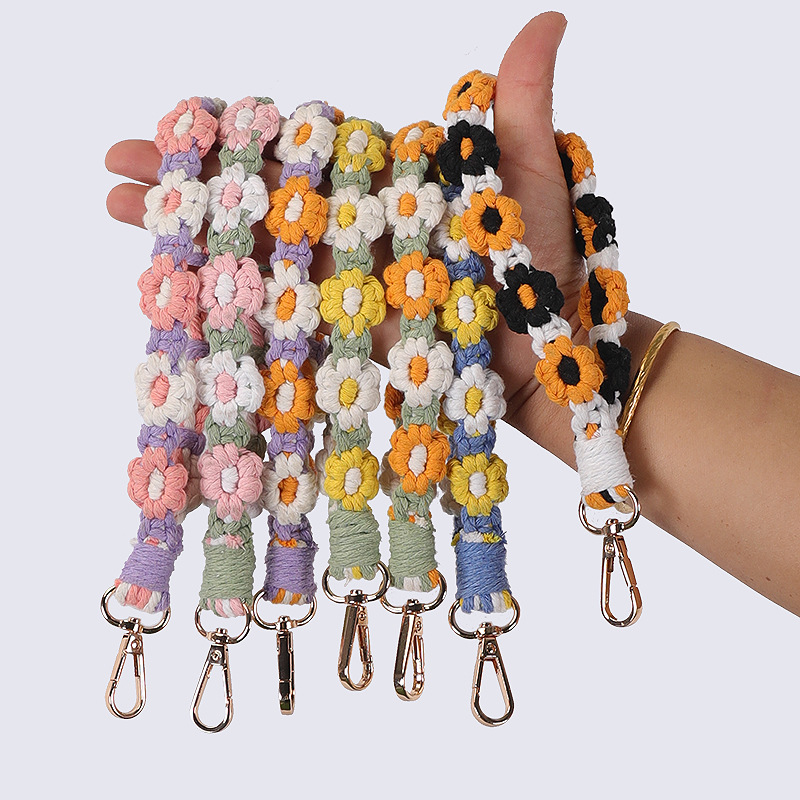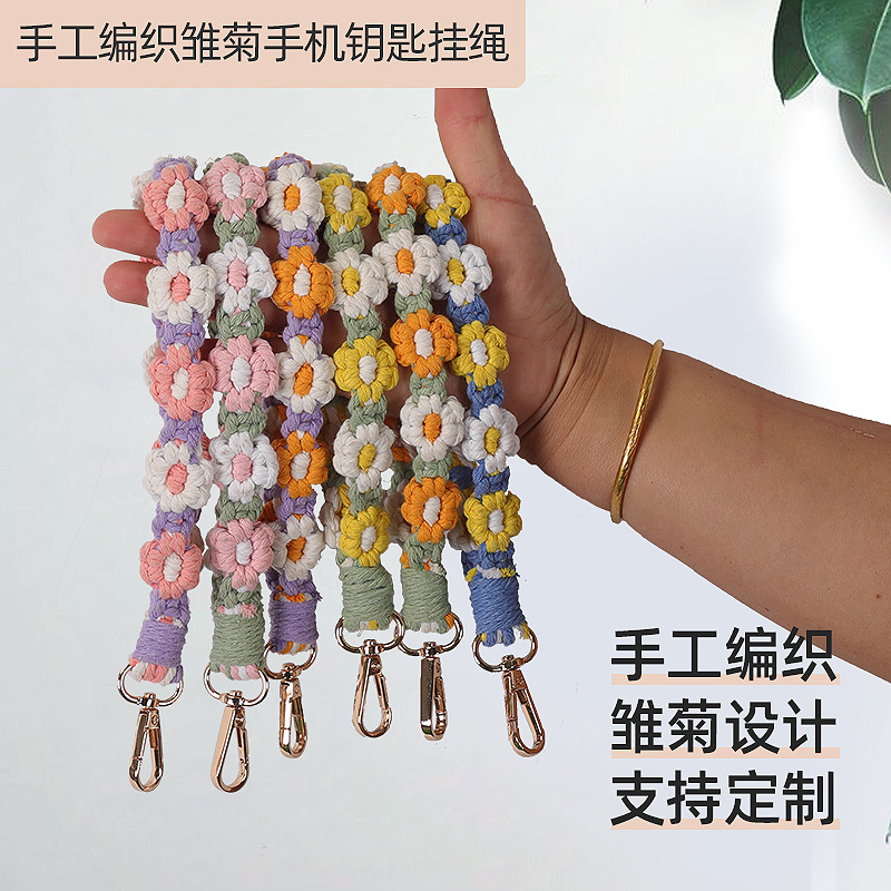 Amazon cross-border hand-woven daisy keychain ins European-style mobile phone pendant woven mobile phone chain