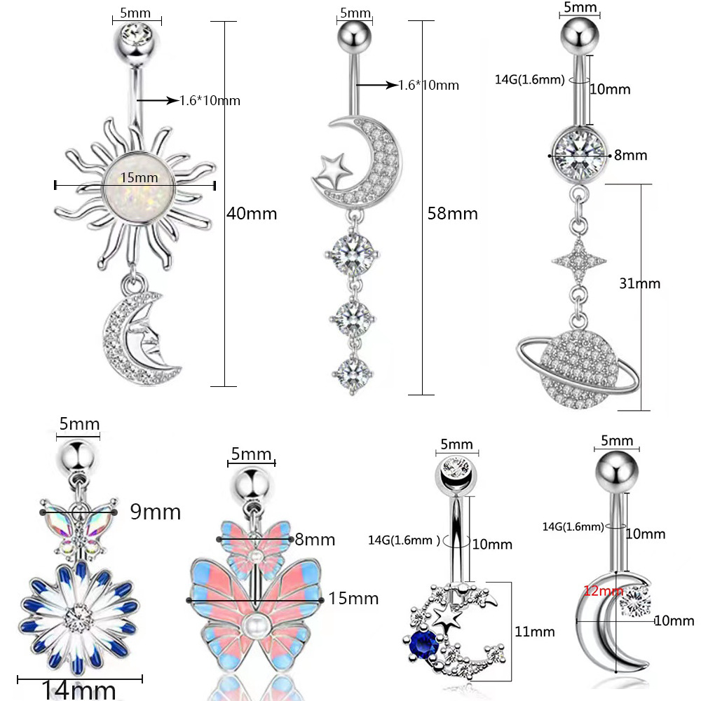 | nameOriginal | Amazon cross-border hot European and American puncture jewelry Planet Moon butterfly flower navel ring set zircon navel nail |