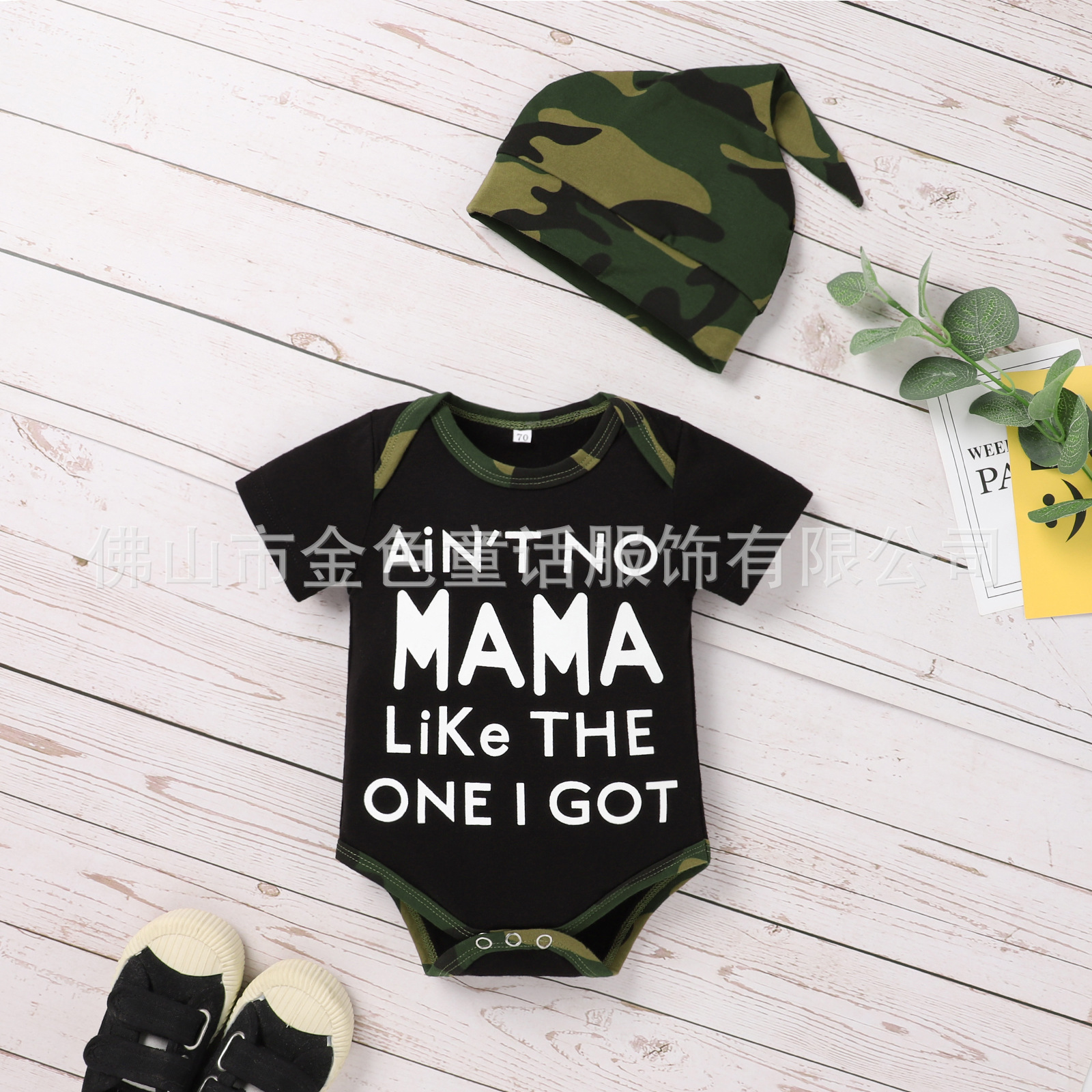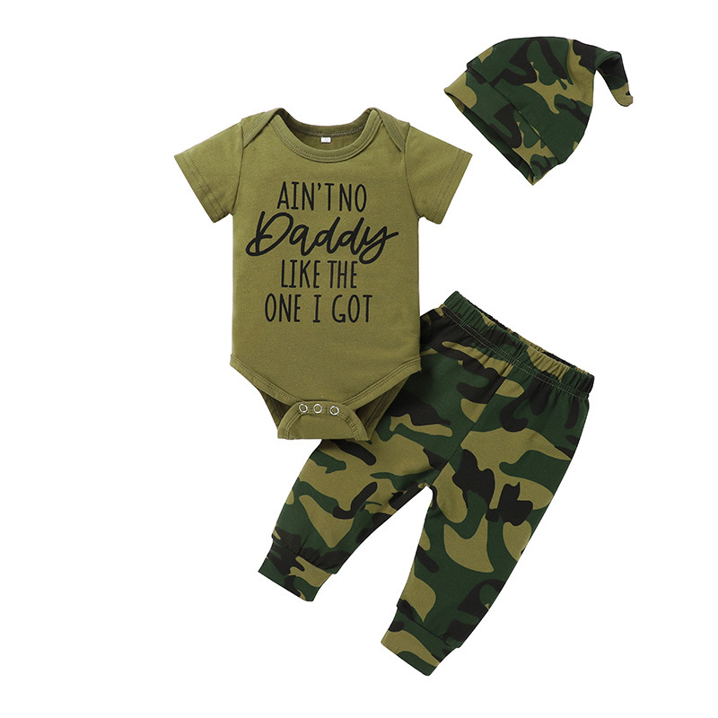 | nameOriginal | Amazon cross-border ins Europe and the United States summer new foreign trade children's clothing letter printing short sleeve + camouflage pants three-piece set |