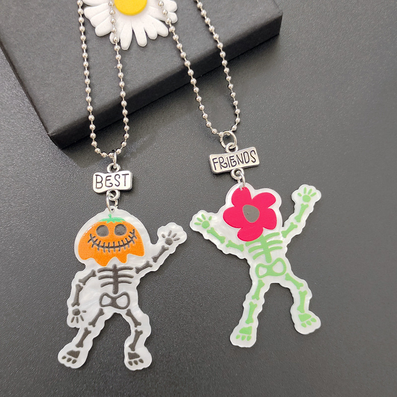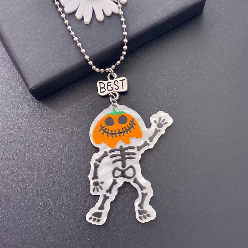 Amazon cross-border new jewelry Halloween series acrylic printed pumpkin skull bone necklace