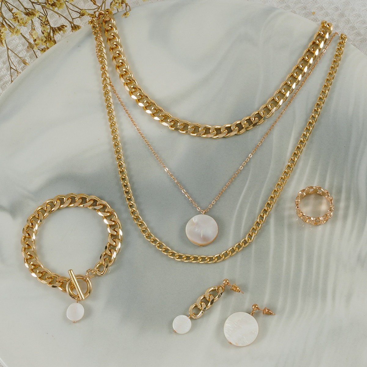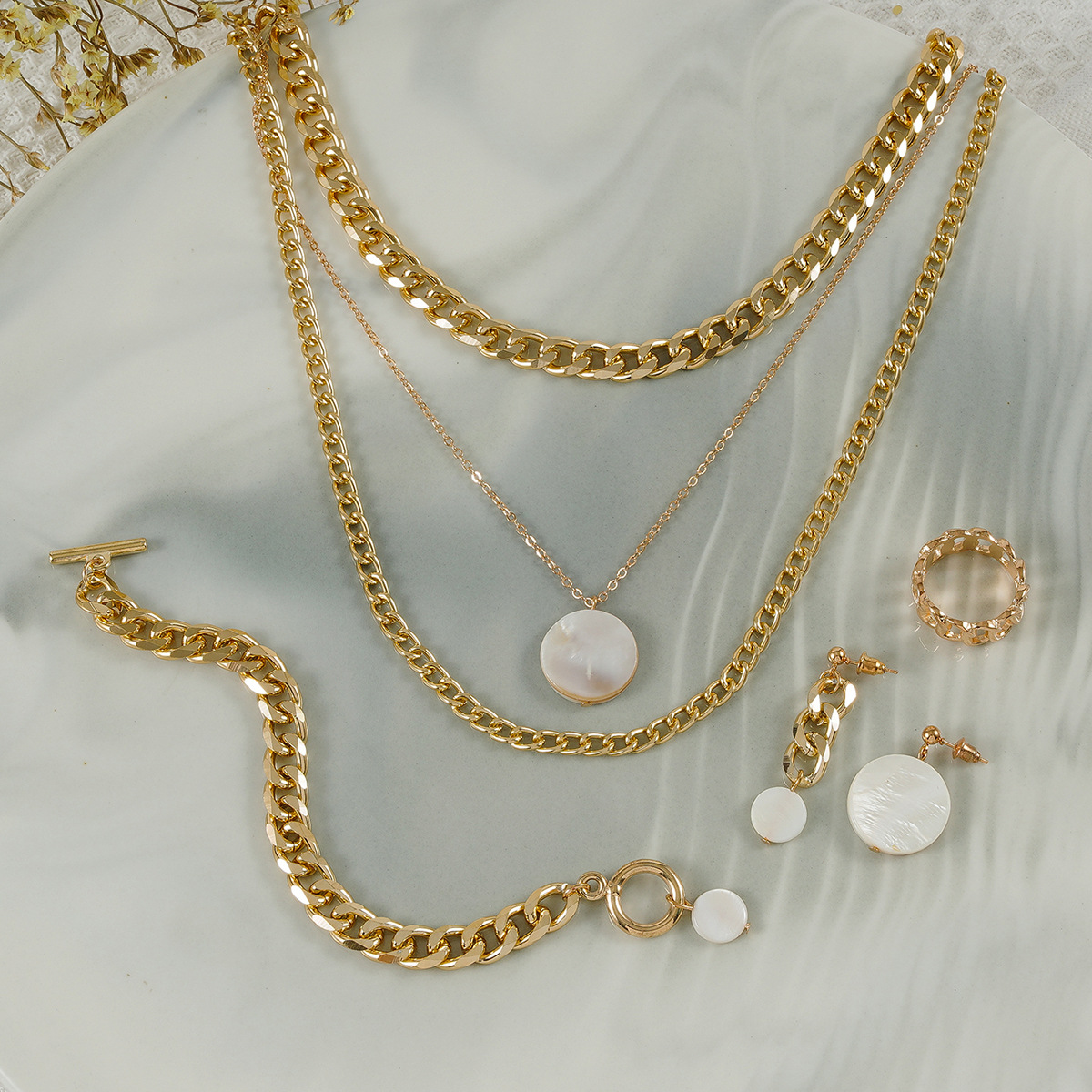 | nameOriginal | Amazon Cross-border New Niche Temperament High Atmospheric Design Sense Round Rectangular Pendant Jewelry suit |