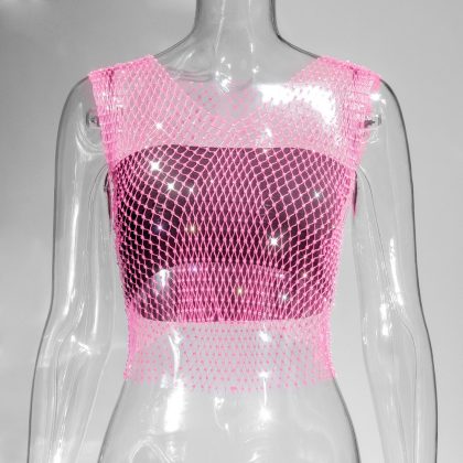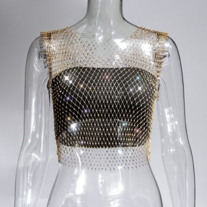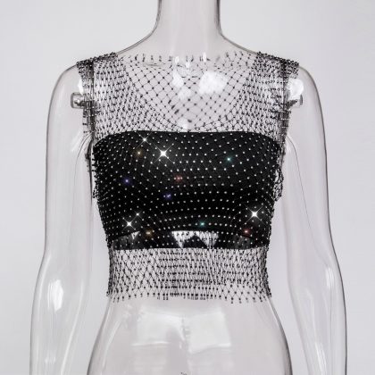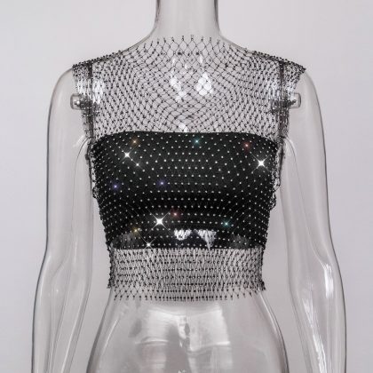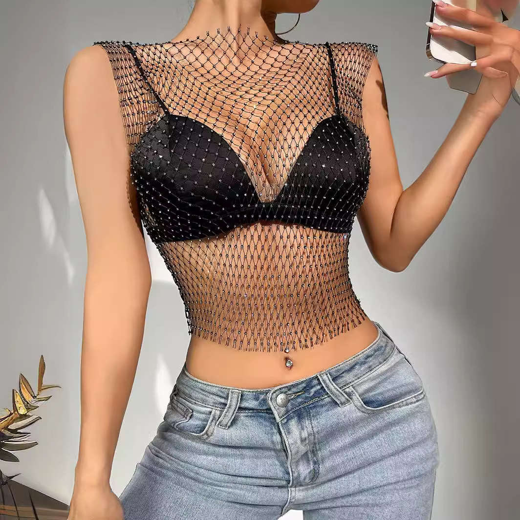 | nameOriginal | Amazon Cross-border Sexy Nightclub Women's European and American Fishing Net Hollow Rhinestone Vest Mesh Flash Diamond Strap Top Women |