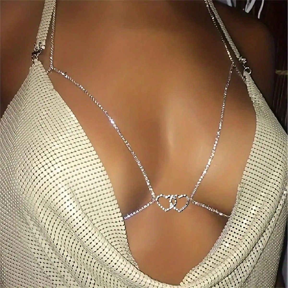 Amazon Cross-border Sexy Pure Chest Chain Women’s Hanging Neck Clavicle Chest Chain Advanced Accessories Bikini Body Chain