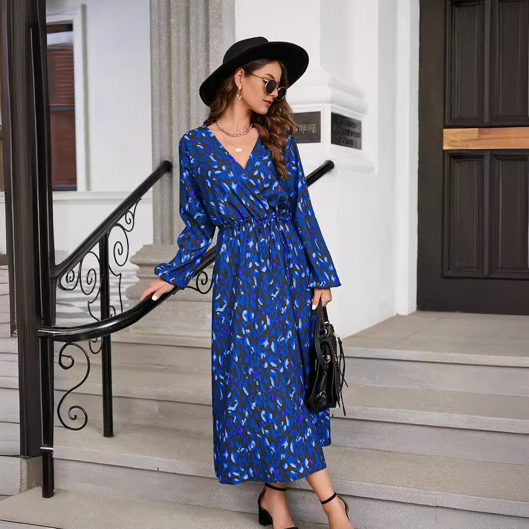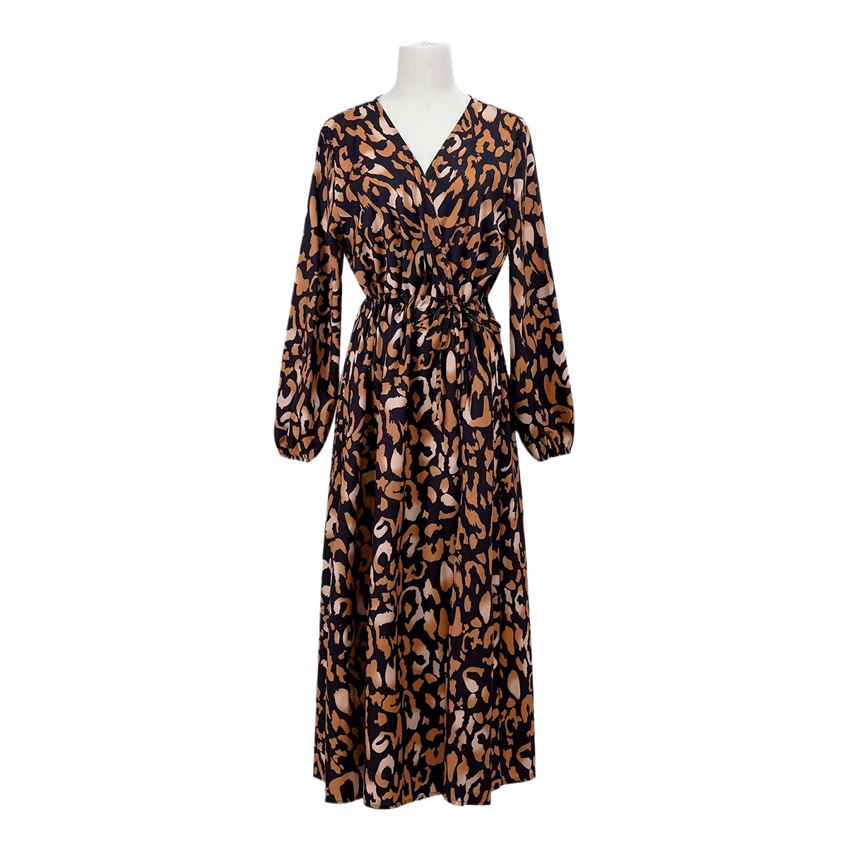 Amazon cross-border supply Europe and the United States foreign trade Women's European station autumn and winter leopard print split waist long sleeve dress