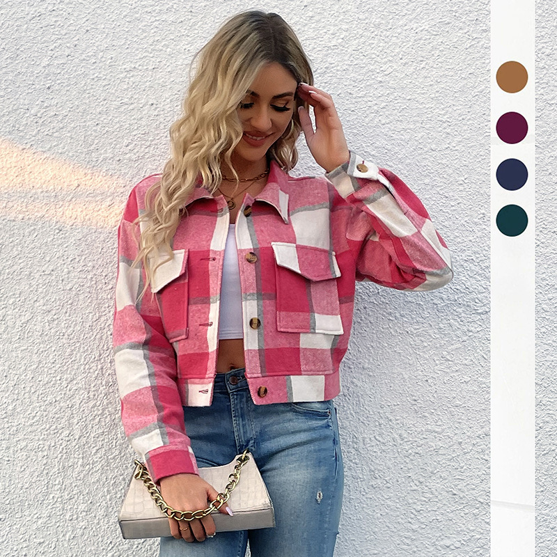 | nameOriginal | Amazon Cross-border Women's 2023 Autumn European and American Foreign Trade Short Plaid Cardigan Shirt Retro Jacket Coat |