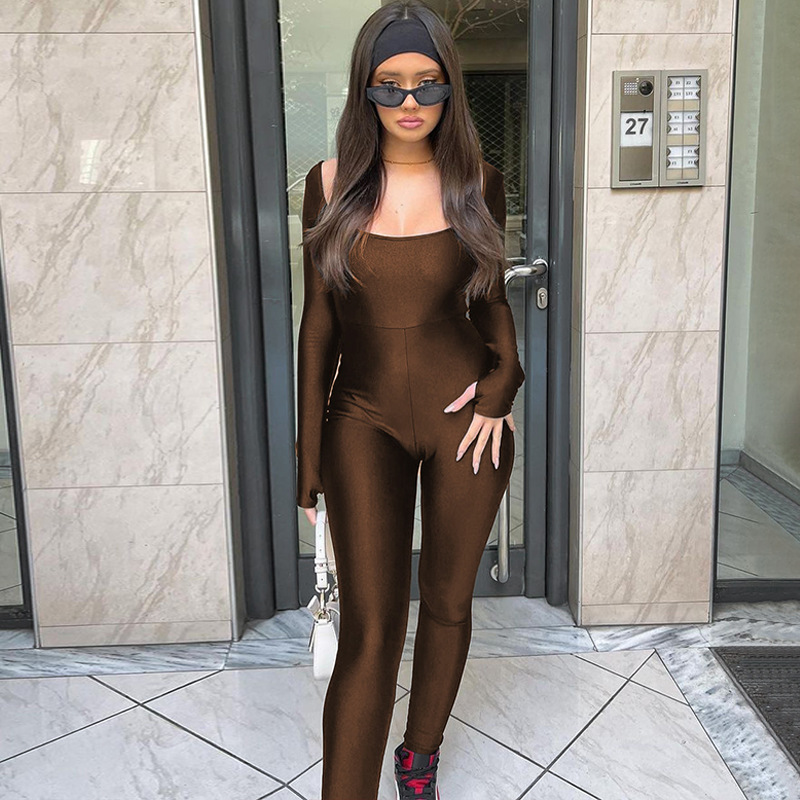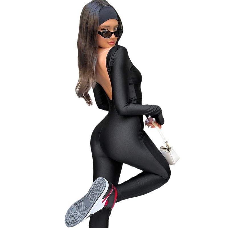 | nameOriginal | Amazon cross-border women's clothing 2023 Winter new fashion street shot solid color U collar backless long sleeve jumpsuit wholesale |