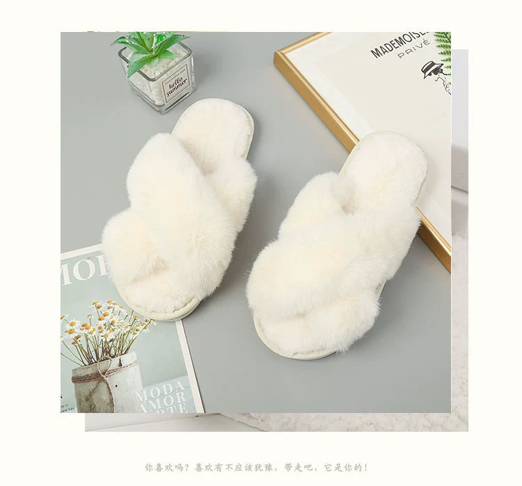 Amazon cross-strap women's high-low imitation rabbit fur slippers