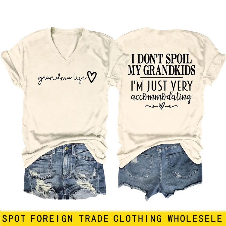 Amazon eBay cross-border V-neck temperament women’s short sleeve I Don’t Spoil My Grandkids European and American T-shirt