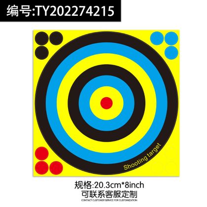 | nameOriginal | Amazon eBay foreign trade shooting target labeling fluorescent color shooting splash arrow target paper bow and arrow aiming target paper |