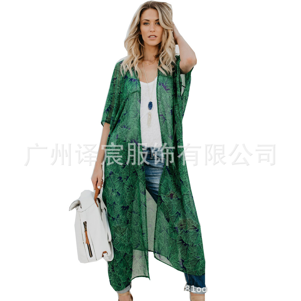 | nameOriginal | Amazon Europe and the United States 5 color 6 size women's wholesale blouse printed chiffon cardigan holiday sunscreen shawl 8870 |