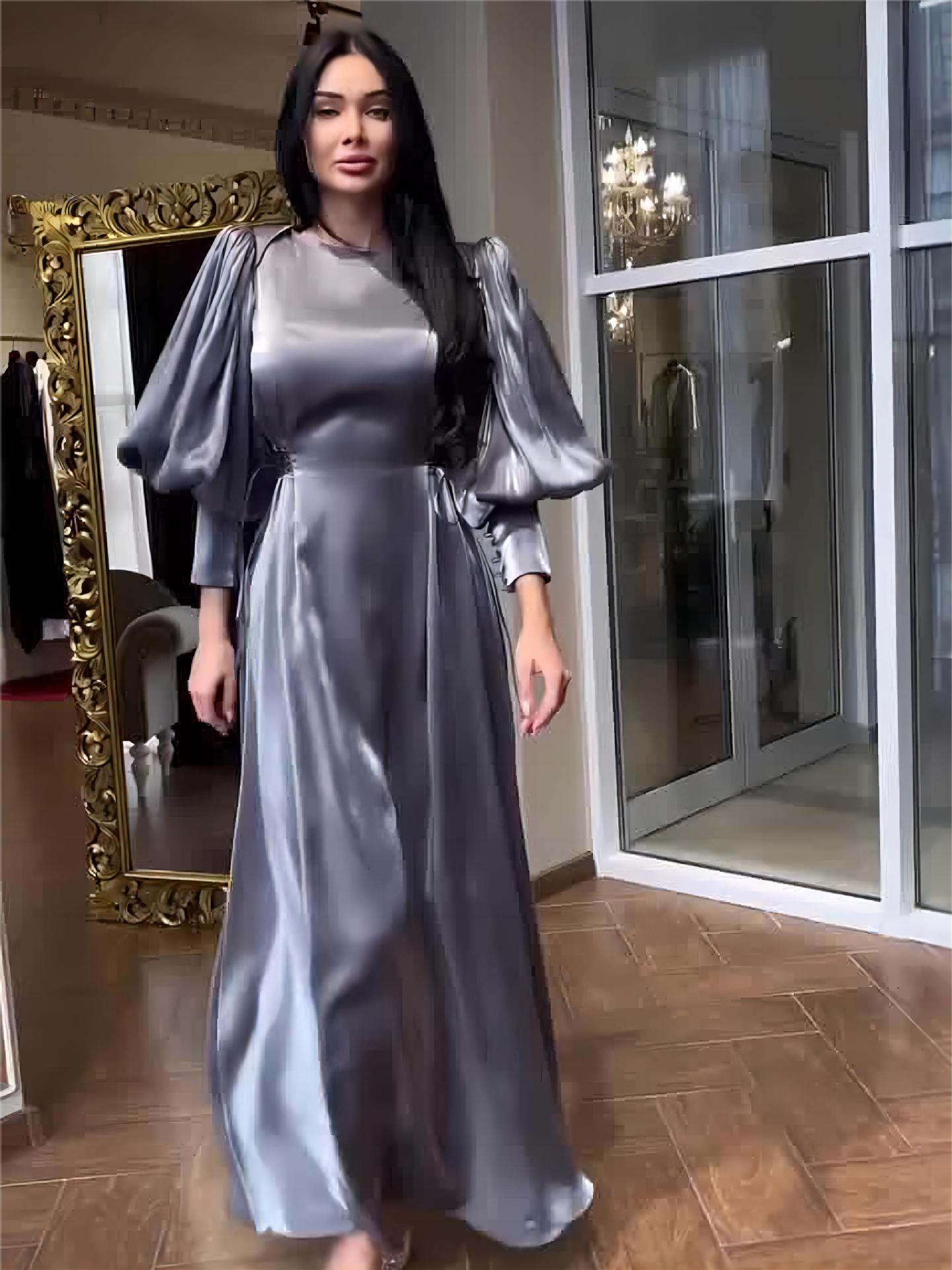 | nameOriginal | Amazon European and American cross-border 2023 Autumn New Lantern sleeve long sleeve satin slim strap dress long dress for women |