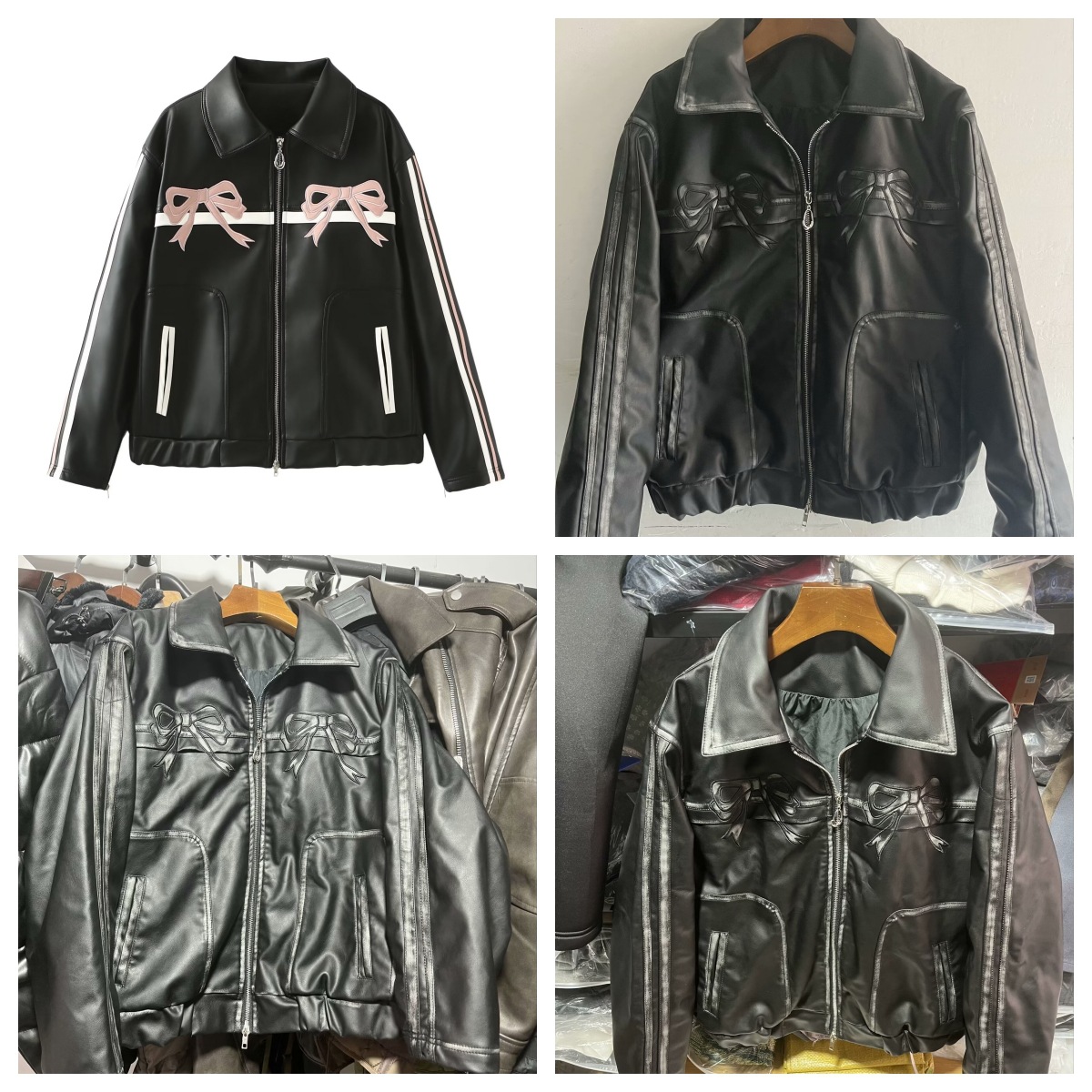 | nameOriginal | Amazon European and American cross-border wholesale 2024 spring new women's sweet cool bow black leather coat for women |