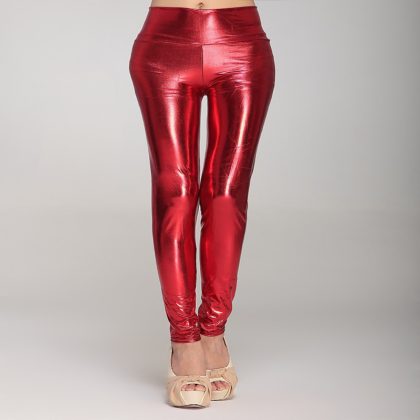 Amazon European and American Fashion PU Bright Leather Women’s High Waist Leggings Leather Pants Night Shop Imitation Leather Pants