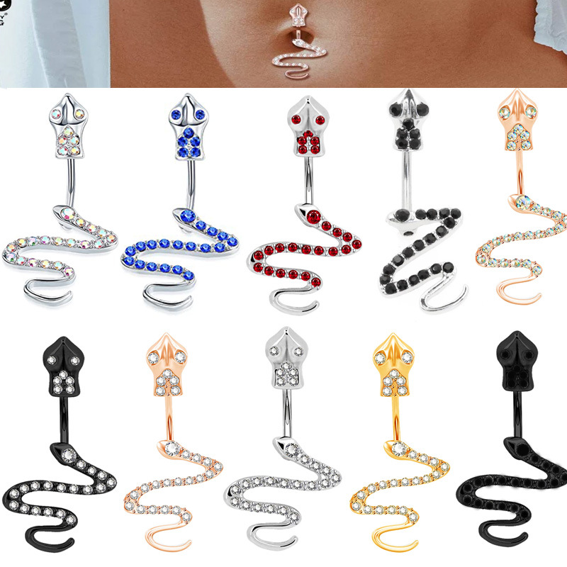 Amazon European and American hot style diamond snake navel ring navel buckle multi-color optional stainless steel vacuum navel nail