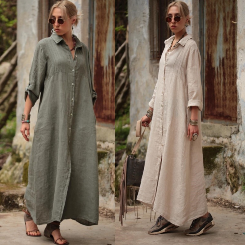 | nameOriginal | Amazon European and American new solid color stand collar long sleeve elegant simple loose fashion long dress |