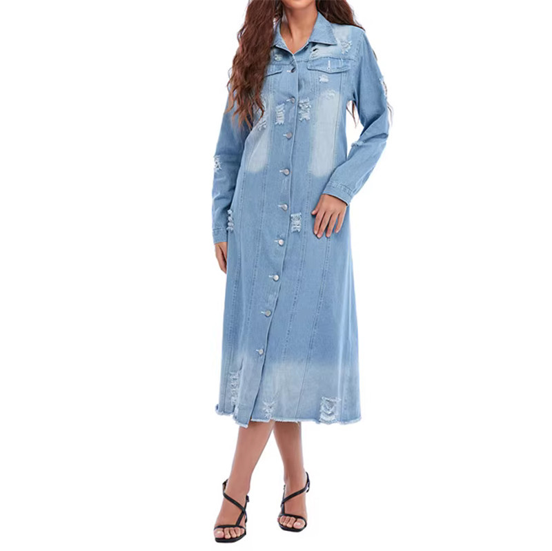 | nameOriginal | Amazon European and American Spring and Autumn New lapel breasted washed ripped Denim long sleeve coat Women's Mid-length trench coat jacket |