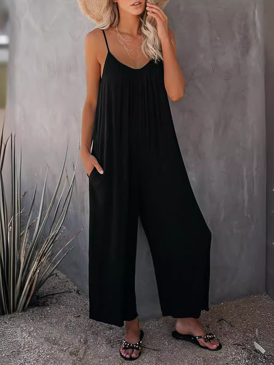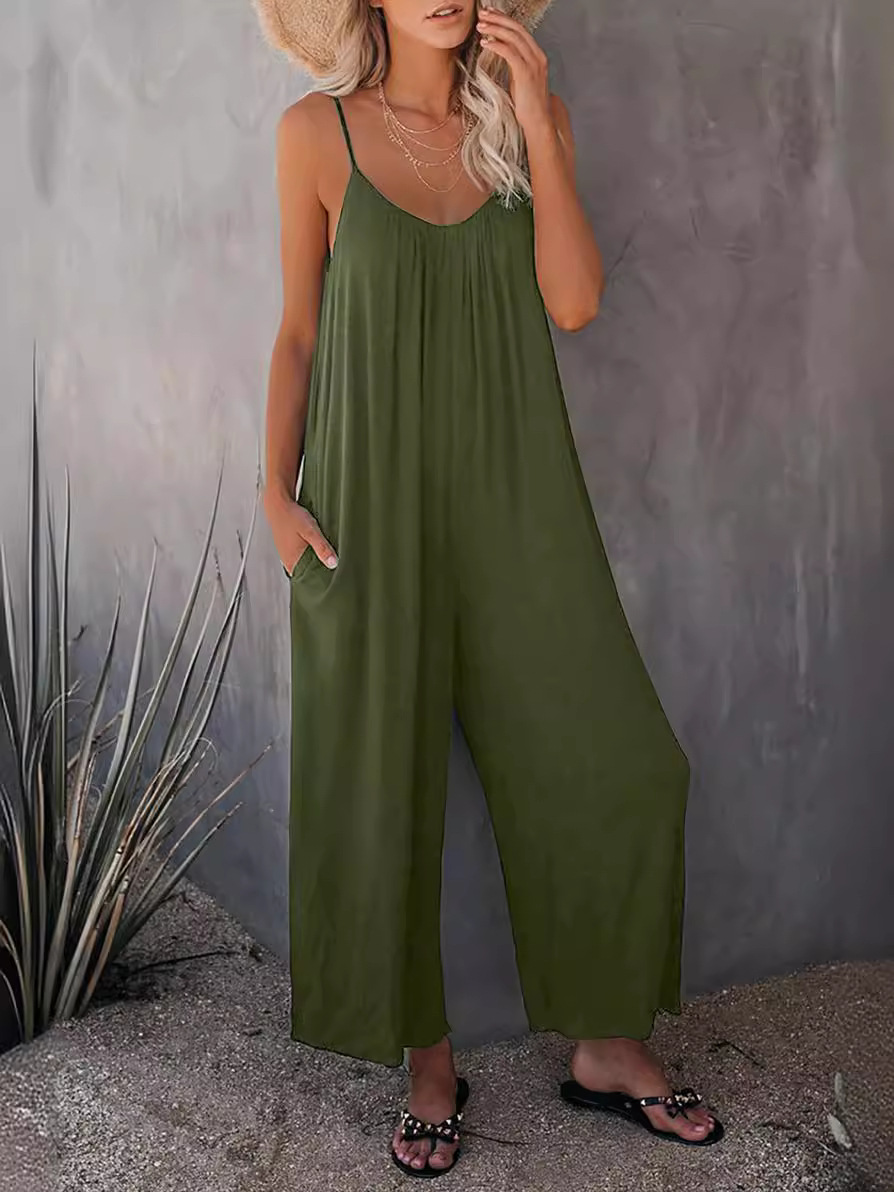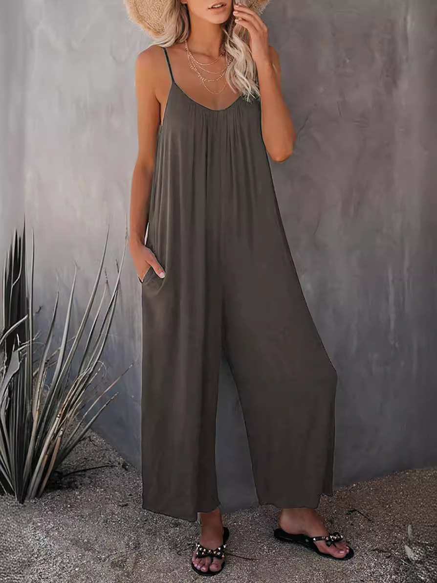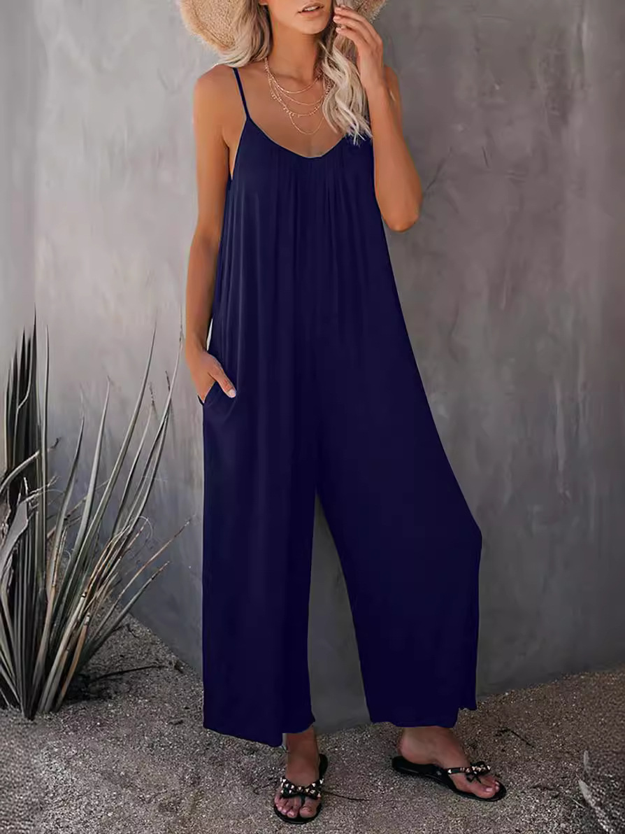 | nameOriginal | Amazon European and American strap jumpsuit women's 2024 Summer new cross-border foreign trade solid color pocket casual jumpsuit |