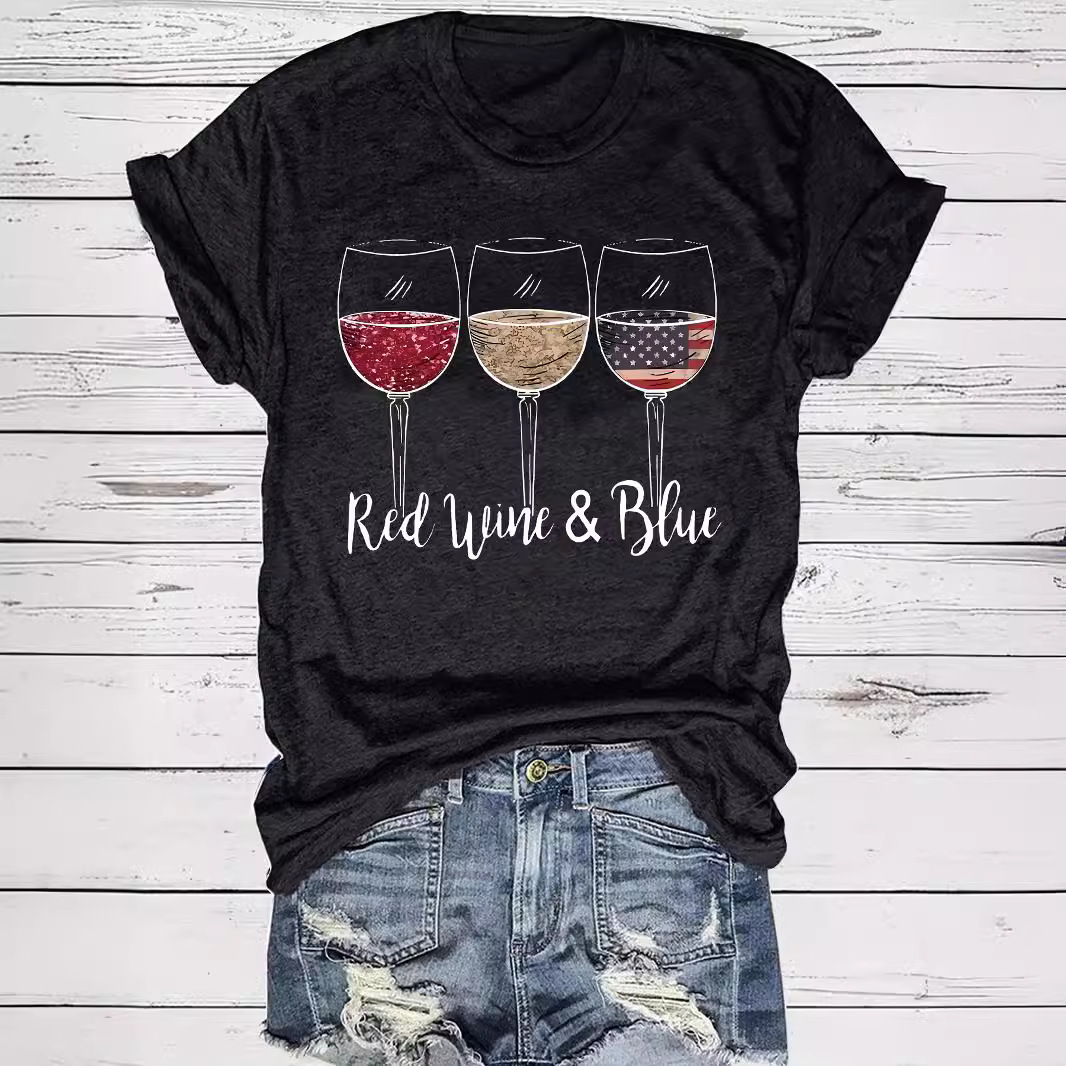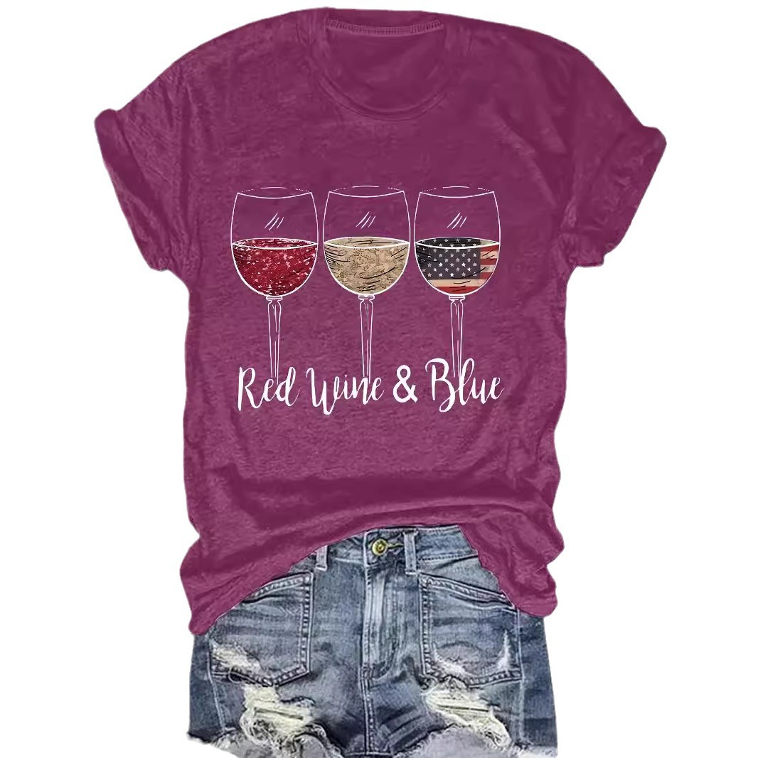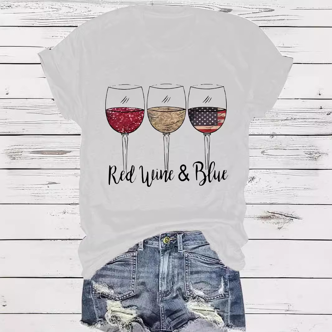 Amazon European and American summer women's cup pattern round neck short sleeve casual fashion foreign trade explosion T-shirt