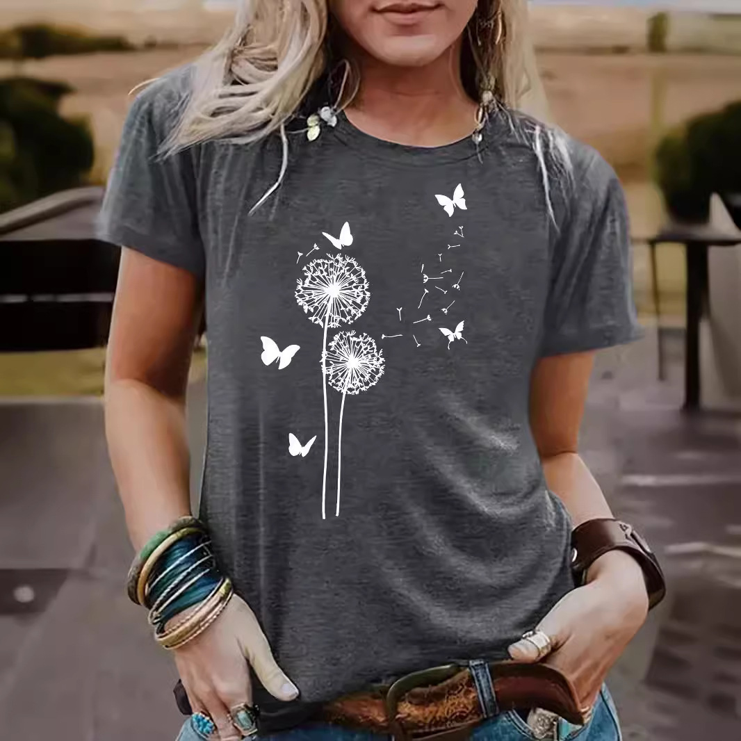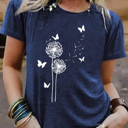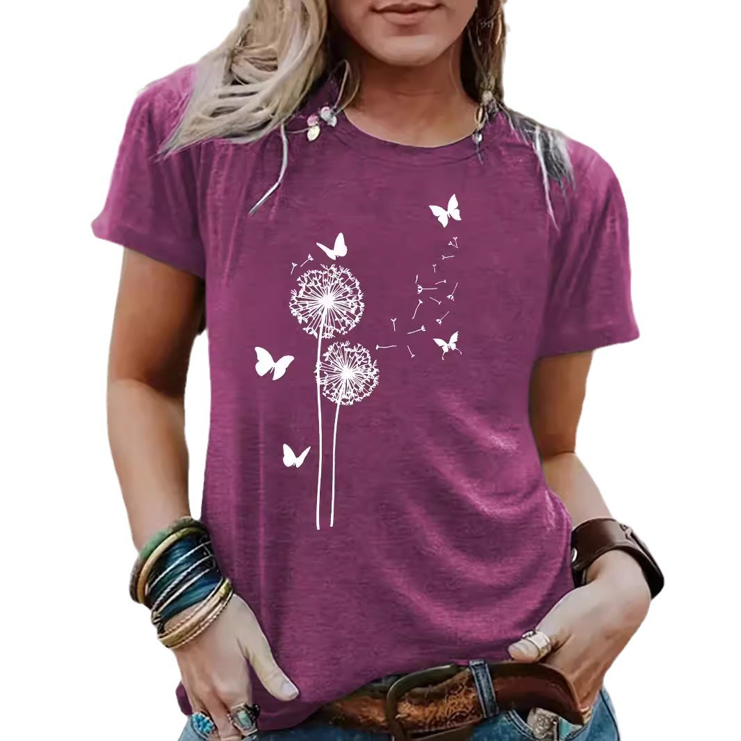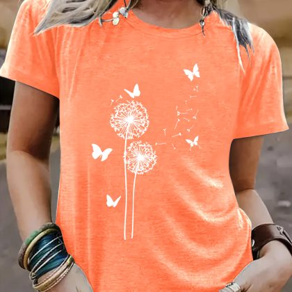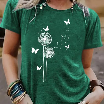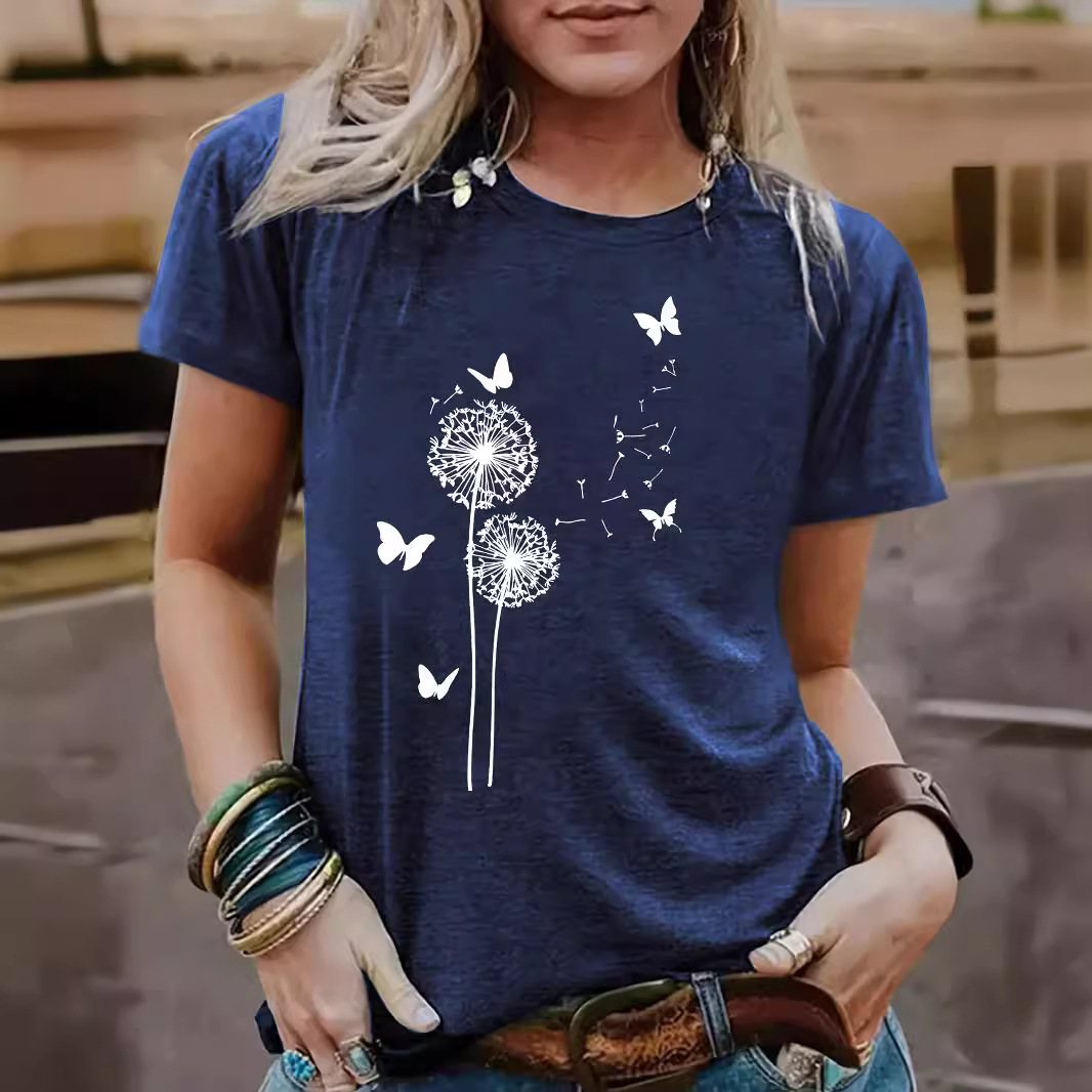 | nameOriginal | Amazon European and American summer women's dandelion pattern round neck short sleeve casual fashion foreign trade explosion T-shirt |