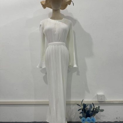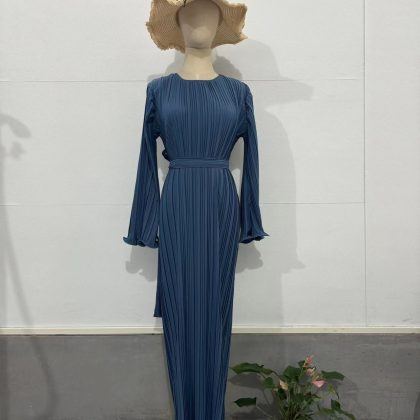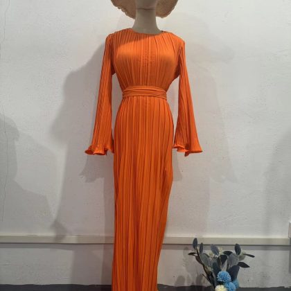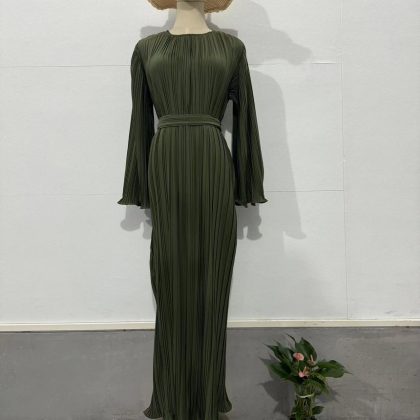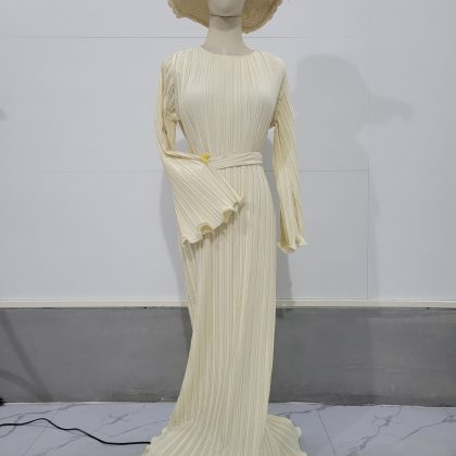 | nameOriginal | Amazon European and American Women's 2023 Autumn New Long Dress Elegant Pleated Horn Sleeve Mid-length Dress |