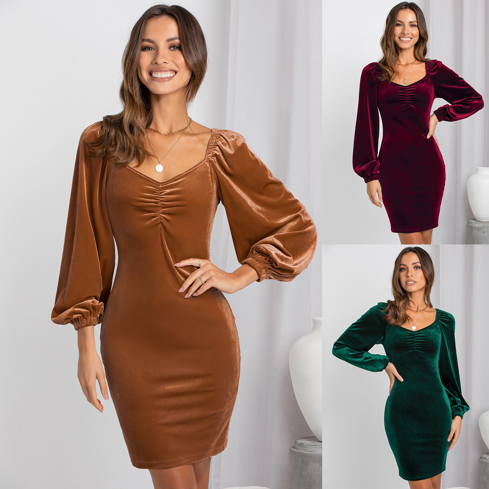 | nameOriginal | Amazon European and American women's clothing 2022 autumn and winter new square collar velvet dress foreign trade slim-fit sheath backless skirt |