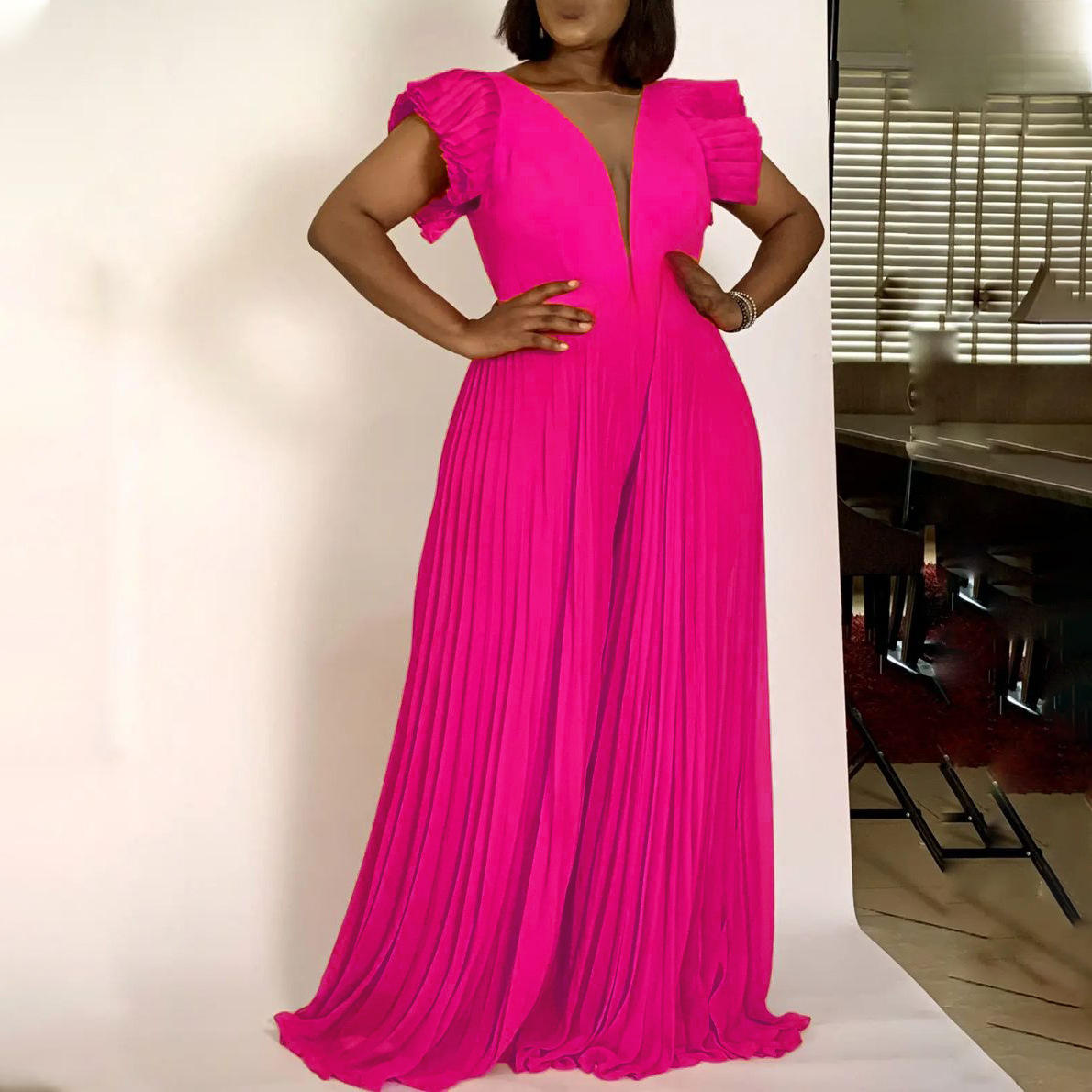 | nameOriginal | Amazon European and American women's summer new fashion stitching sexy pleated high waist loose wide leg pants foreign trade jumpsuit |