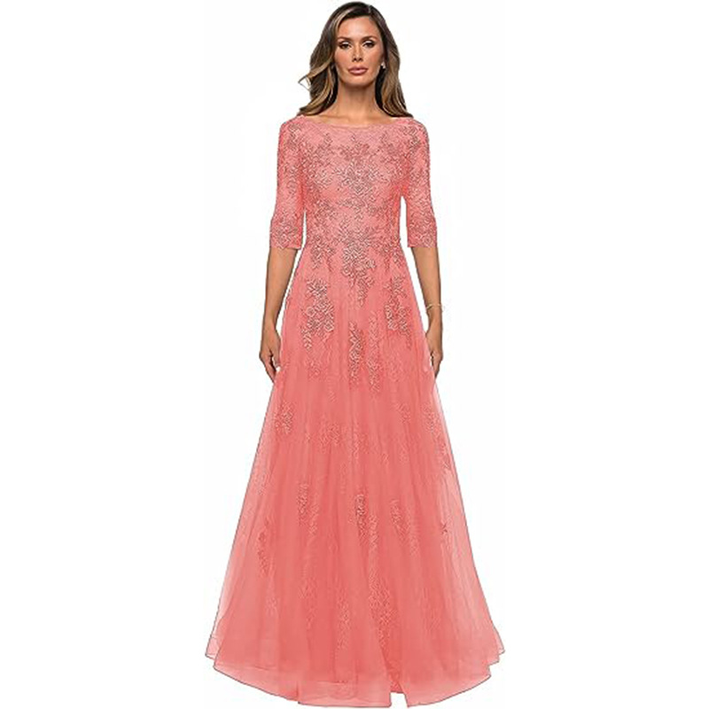 Amazon Evening Dress Elegant Lace Bridal Mother Dress Women’s Formal Dress with Sleeves