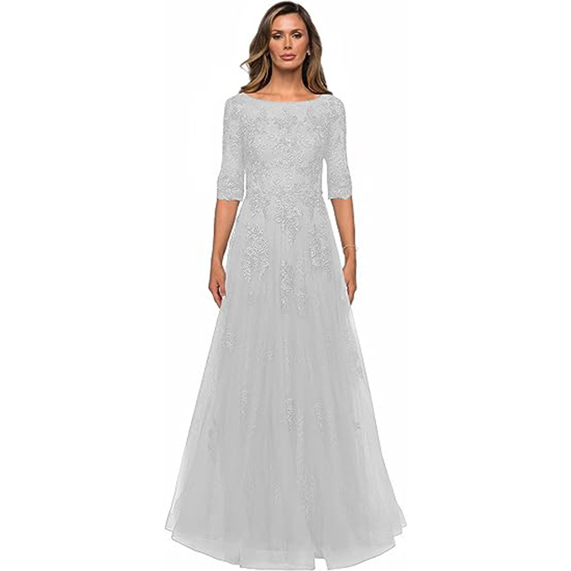 Amazon Evening Dress Elegant Lace Bridal Mother Dress Women's Formal Dress with Sleeves