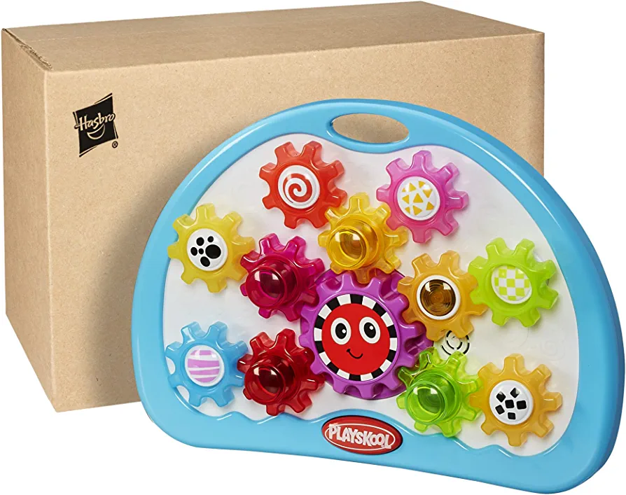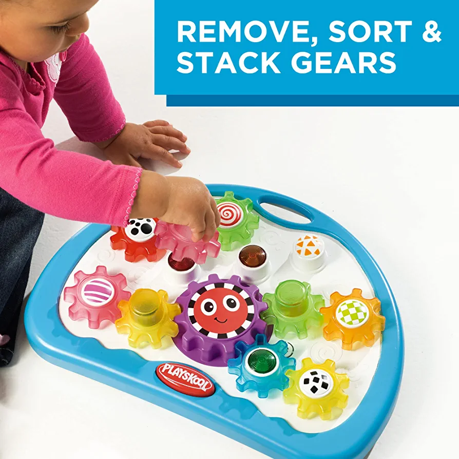 The set of gears is colorful and captivating, with twinkling lights and fun music. Older babies can stack and sort the gears after removing them. The toy also features an automatic shut-off to conserve battery life and a convenient carry handle for on-the-go play.