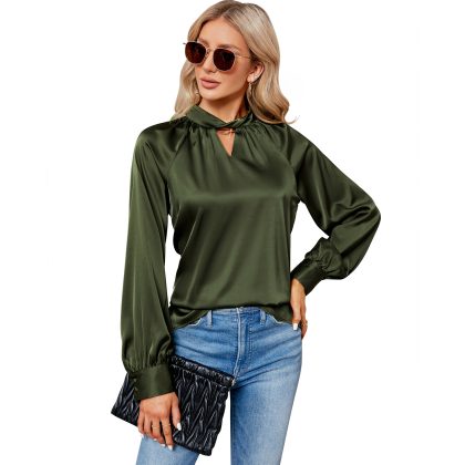 | nameOriginal | Amazon explosions 2023 new shirt Europe and the United States cross-border women's satin V-neck long sleeve loose top |