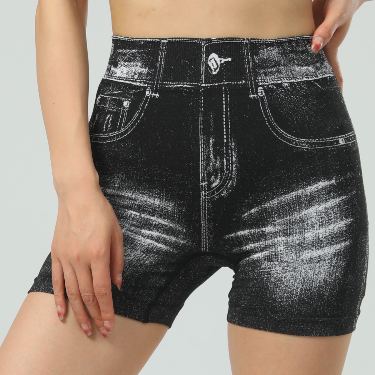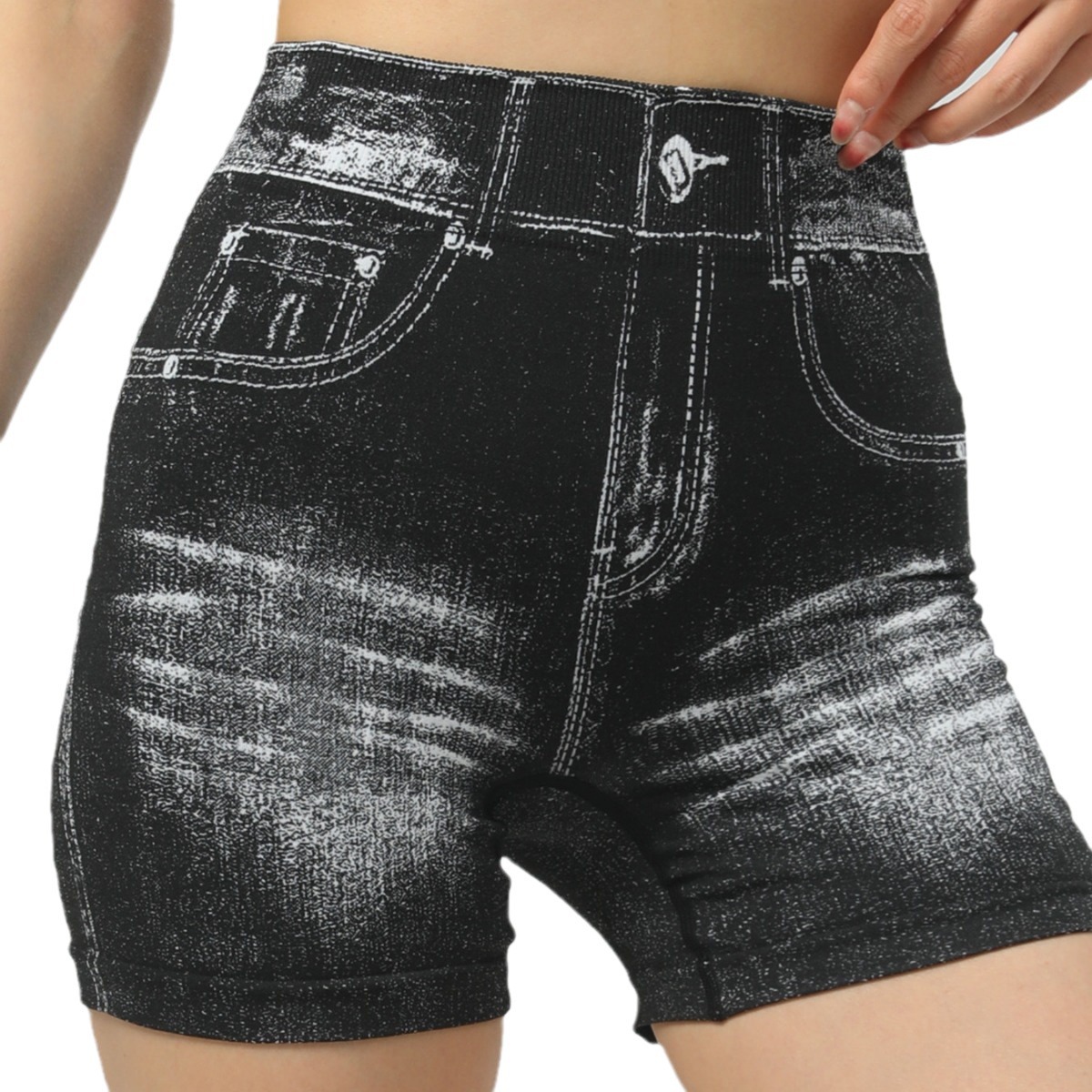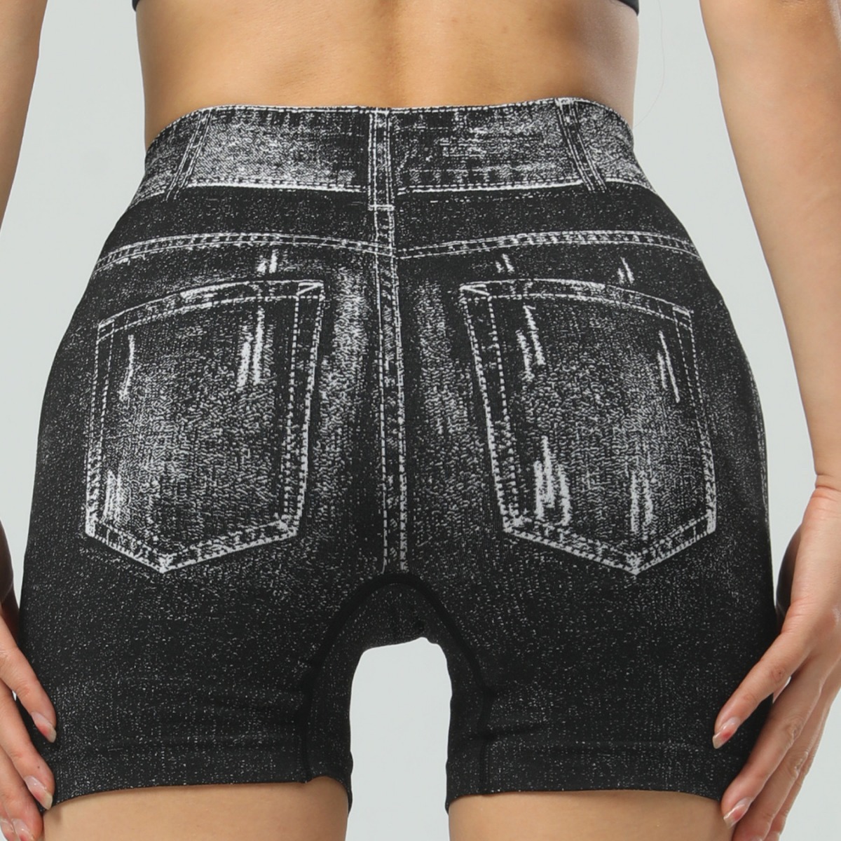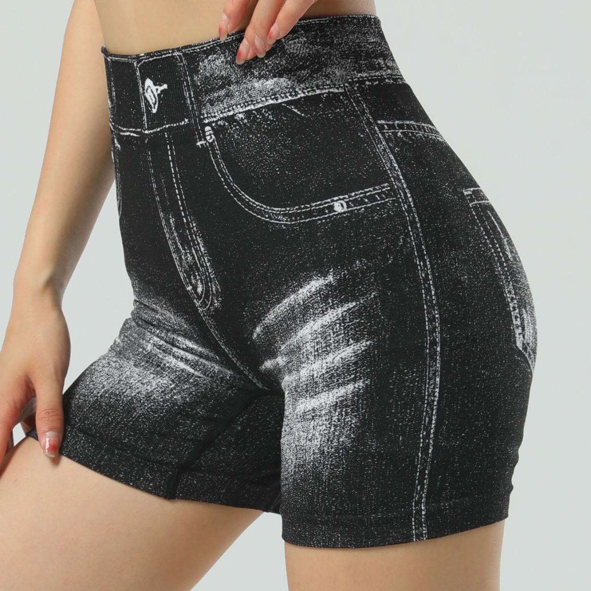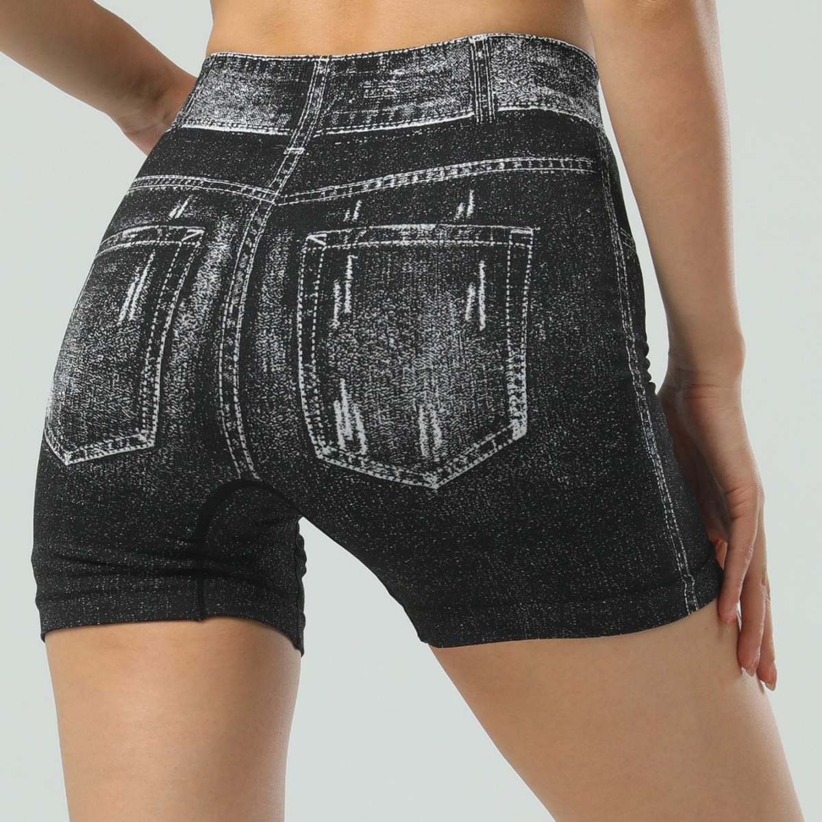 Amazon Explosions Imitation Denim Sports Yoga Shorts Summer Seamless High Elastic Quick Dry Running Fitness Three-point Pants