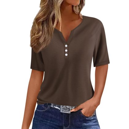 Amazon Explosions Women's T-Shirt V-Neck Three-Button Printed Short Sleeve European and American Women's Top Source Factory