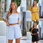 | nameOriginal | Amazon Fashion 2023 Spring and Summer European and American New Women's Cross-border Casual Shoulder Solid Color Loose Short-sleeved Two-piece Set |