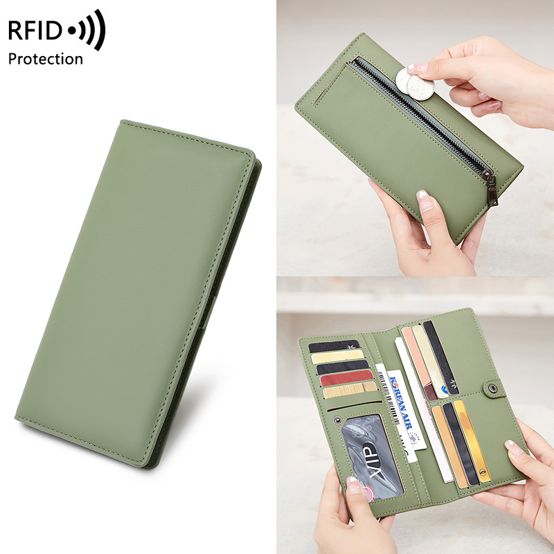 Amazon hot sale RFID anti-theft brush PU solid color wallet women zipper buckle card holder simple ultra-thin long wallet