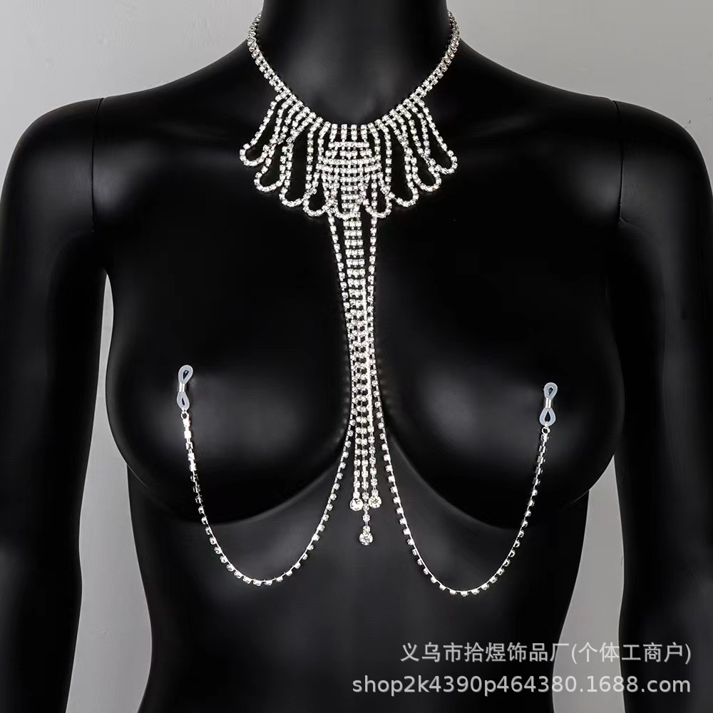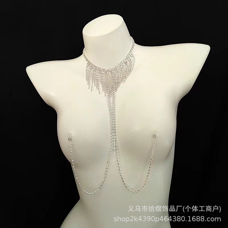 | nameOriginal | Amazon Hot Selling Sexy Tassel Milk Chain Nightclub Personality Rhinestone Neck Necklace Body Chain European and American Explosions Women |