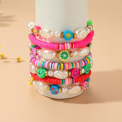 | nameOriginal | Amazon Hot Selling Y2K Jewelry Bohemian Style Bracelet Set Color Soft Pottery Smile Heart Shape Pearl Jewelry |