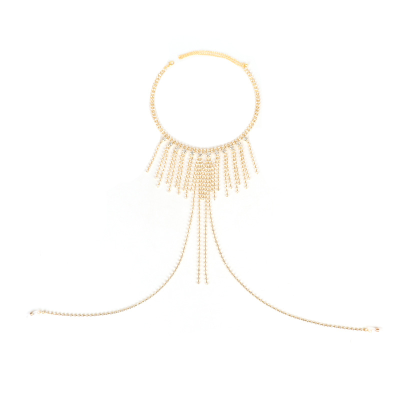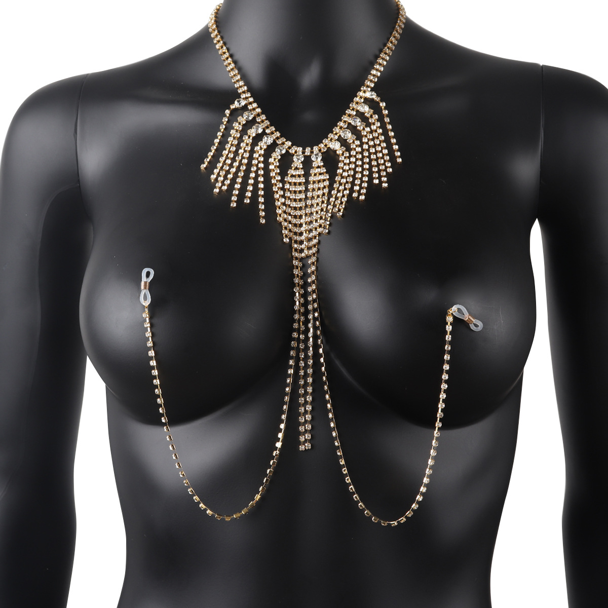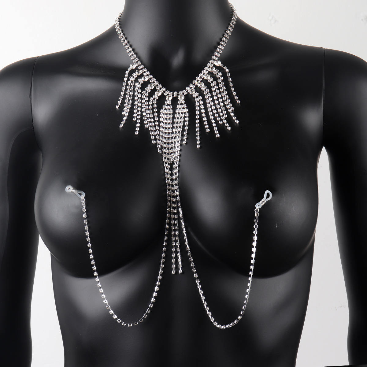 | nameOriginal | Amazon Hot Sexy Tassel Nipple chain Nightclub Personality Rhinestone Necklace body chain European and American body chain |
